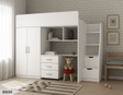 Налічує 8 різновидів дизайну.Нижня частина ліжка складається із шафи, настінних поличок, сходів, виїзного комоду.Габарити шафи з середини: ширина 668мм, висота 1270мм, глибина 800мм.Наповнення шафи: три полички і штанга для одягуДля виготовлення даних меблів використовується ЛДСП класу «Е1» товщиною 16мм.Облицювання ліжка здійснюється прорезиненою крайкою «в паз» (Т-шка).Облицювання здійснюється крайкою ПВХ товщиною 0,6мм.В шухлядах використовуються телескопічні направляючіL-400мм. Спальне місце даної моделі :1700*800мм Максимальне навантаження на спальне місце 120кг.До даної моделі найкраще підходять матраци: «Соня 2», «Соня 2+» та «Польський» котрі є в переліку товарів компанії Viorina-DEKO.