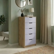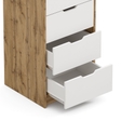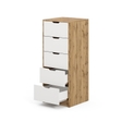 Доповнення до серії меблів "Teenager" комод 5. Виготовлений з ЛДСП класу Е1 товщиною 16мм. Корпус може бути у двох кольорах - Білий та Дуб Тахо. Кольори фасадів: білий, сірий, графіт, лаванда, сакура, дуб Тахо. Комод містить 5 шухляд змонтованих на телескопічних направляючих довжиною 400мм.